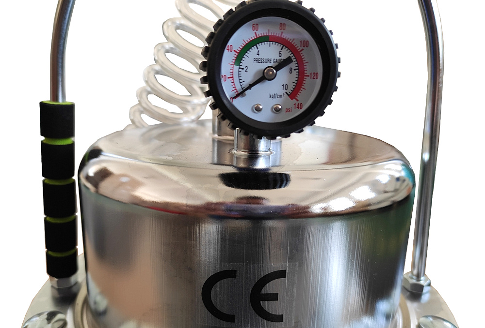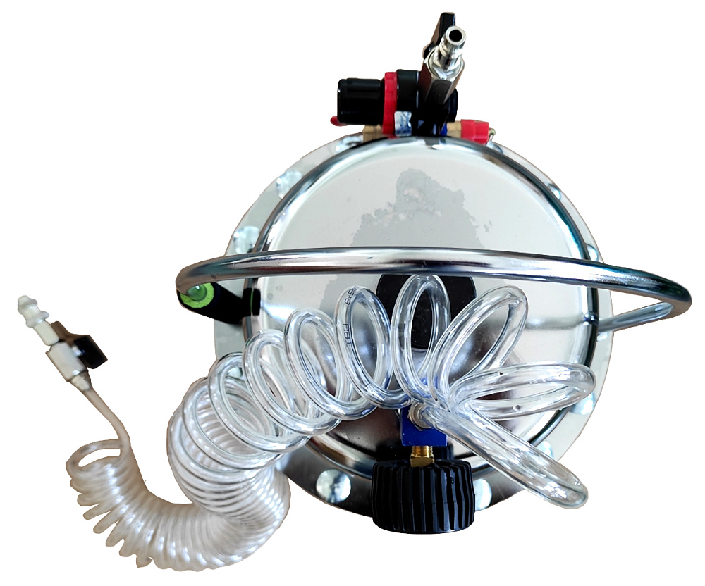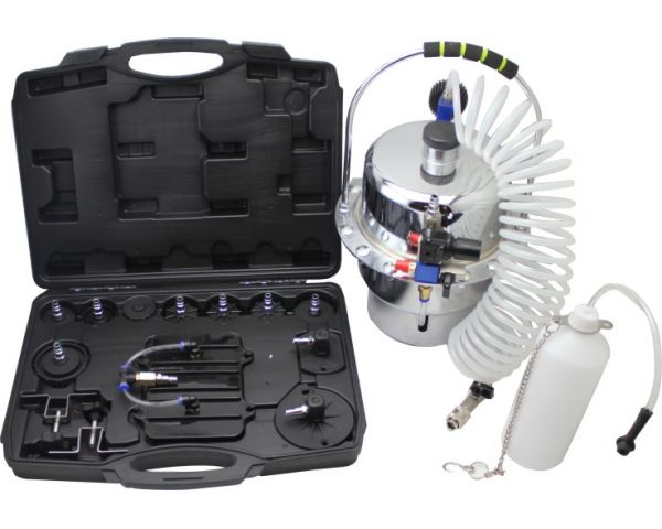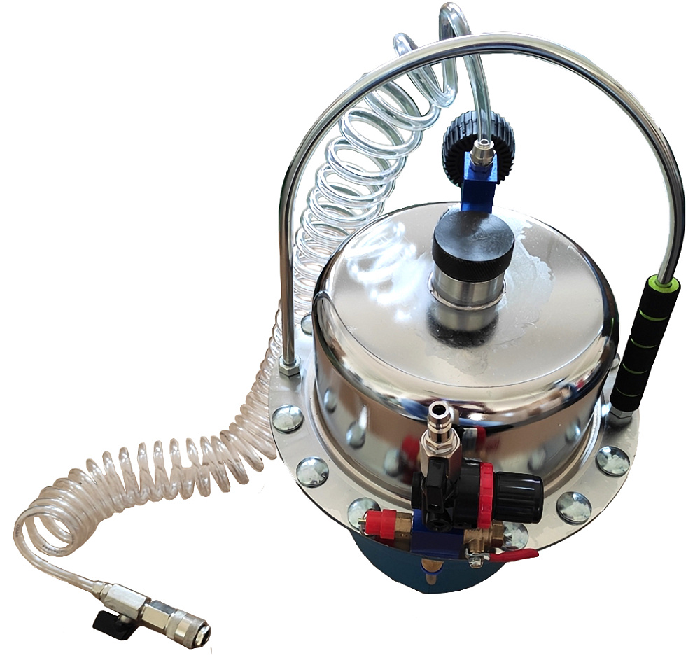 Комплектация устройства позволяет заменить тормозную жидкость с последующей прокачкой системы одному человеку. Благодаря продуманной конструкции оборудования абсолютно исключено попадание воздуха в тормозную систему машины. Создает мощный вакуум для промывки гидравлических тормозов и сцепления. Качественный манометр регулирует рабочее давление устройства.