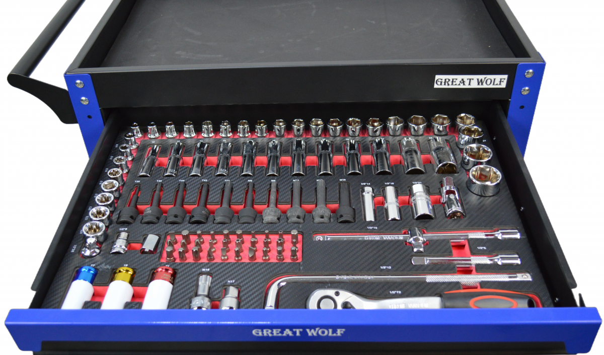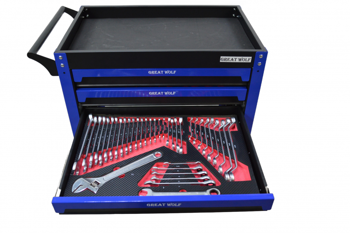 Инструментальная тележка Great Wolf GW-3ST2 Blue с полкой и тремя ящиками – это не просто хранение инструментов, это продуманная система для упорядочивания рабочего процесса, призванная увеличить эффективность и сократить время на поиски нужных инструментов. В комплекте с тележкой 324 позиций инструментов в ложементах.