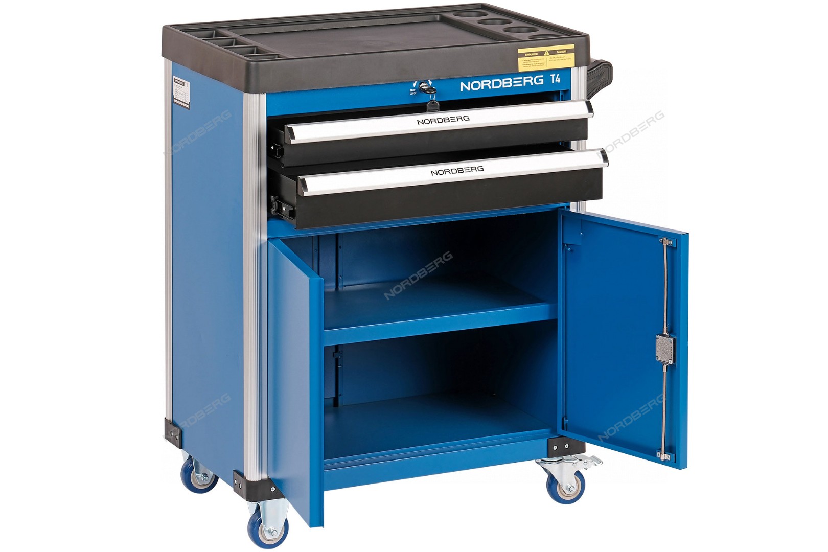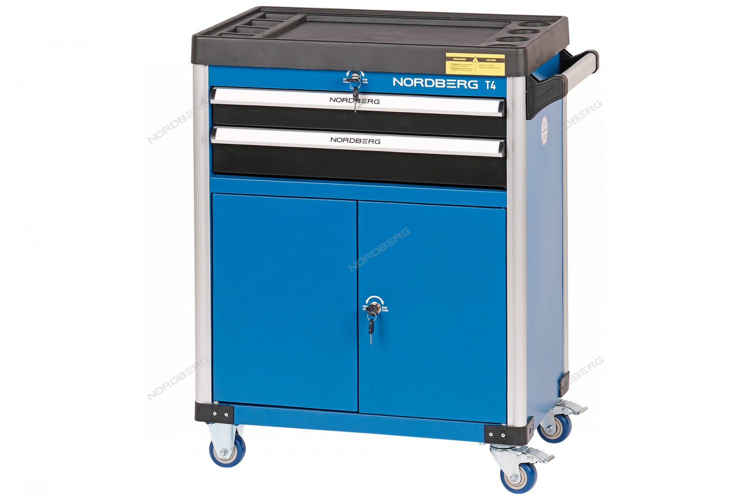 Тележка инструментальная, 2 выдвижных ящика, 2 полки с дверцами NORDBERG T4 характеристики