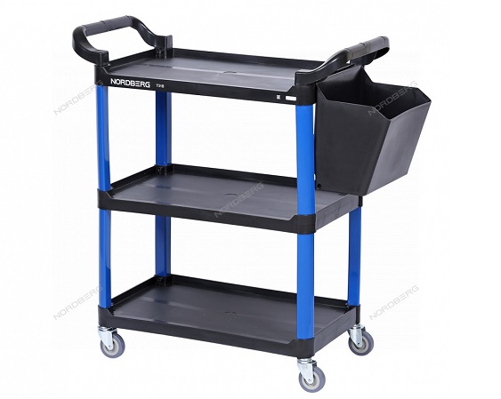 Тележка инструментальная, 3 пластиковые полки, синяя Nordberg T31B