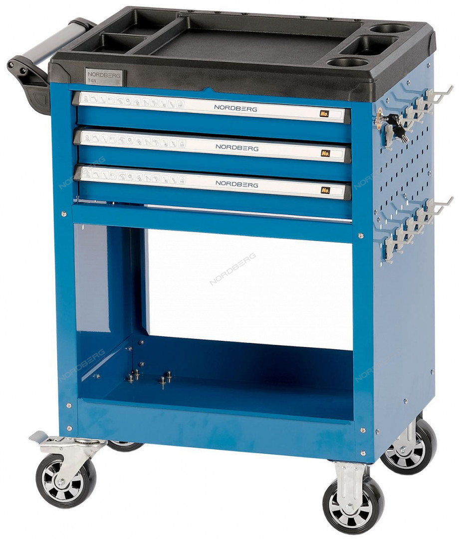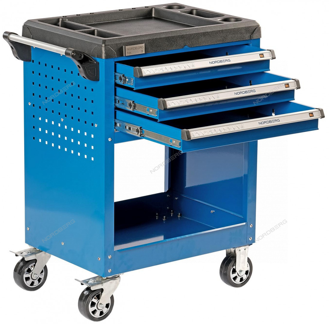 Тележка инструментальная профессиональная 3 полоки+открытый отсек NORDBERG T4N характеристики