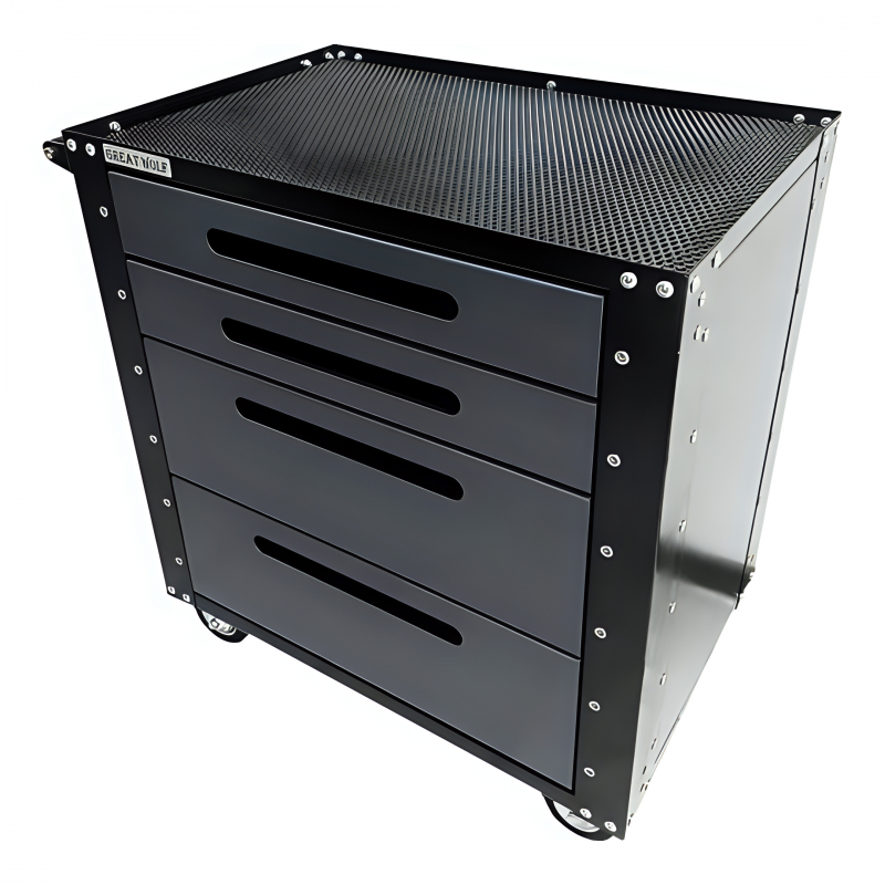 Инструментальная тележка Great Wolf GWT-G4 предназначена для удобного хранения и транспортировки инструмента по ремонтной зоне. Увеличенные колеса с блокирующим механизмом надежно фиксируют тележку на месте. 2 ящика глубиной 185мм и два глубиной 80мм позволяют хранить габаритный инструмент. Благодаря множеству врезных резьбовых отверстий возможно прикрепить дополнительные полки, крепления, держатели для инструмента и тд.