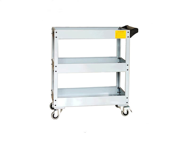 Я недавно приобрел тележку для инструментов с 3 полками для своей автомастерской, и я рад, что сделал это. Она сделана из металла, поэтому она прочная и долговечная. Колеса позволяют легко перемещать ее по мастерской, что очень удобно.