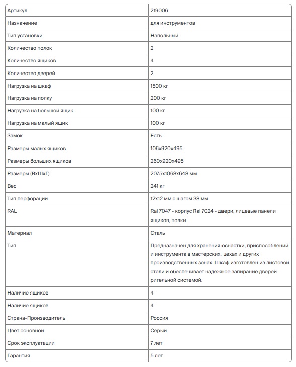 Шкаф металлический инструментальный TNC 181.4B1.2S1