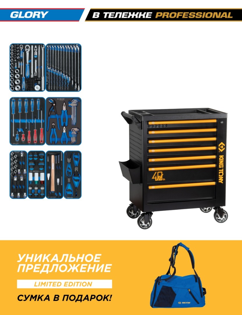 • Тележка инструментальная KING TONY 87G38-7B-P40 серии PROFESSIONAL "40th Anniversary"
