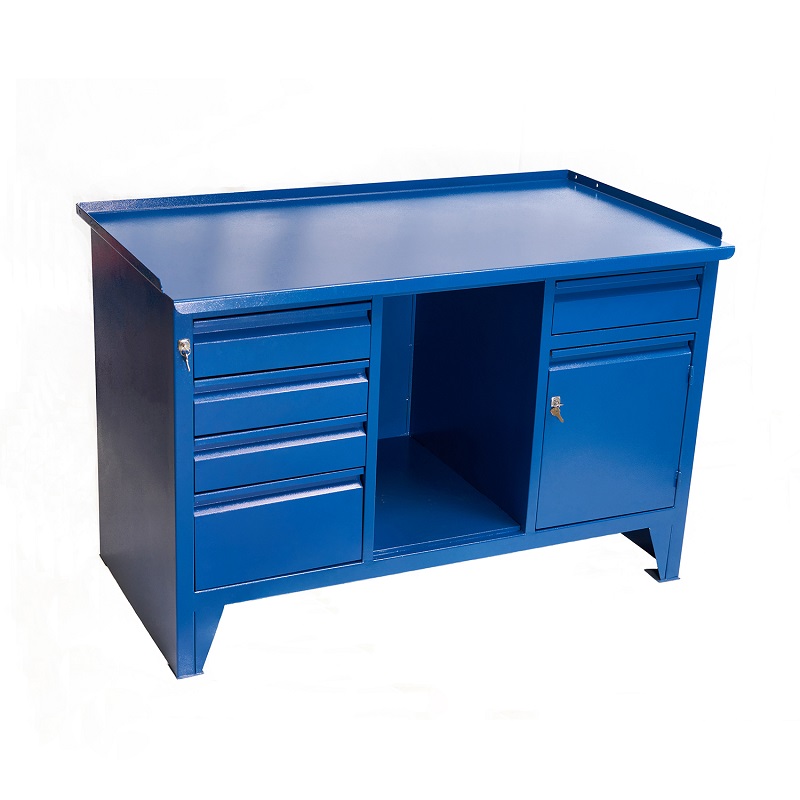 Верстак слесарный металлический ВВС-215-3, 2-х тумбовый с нишей, 870*1300*700мм, RAL5010 - надежная мебель, которая будет служить вам долгие годы!