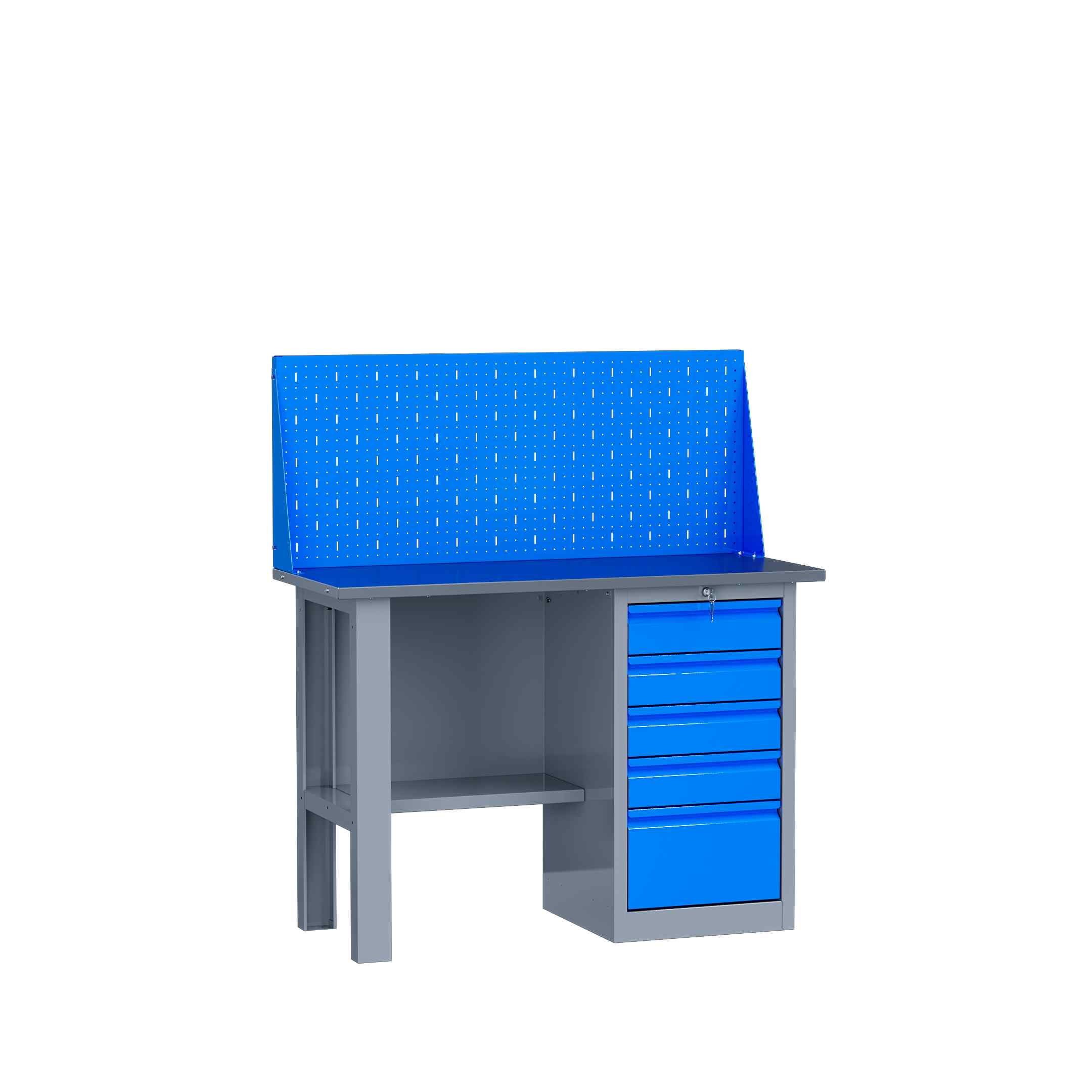 Верстак SLF 121.15-1 – оптимальное решение для обустройства рабочих мест слесарей, плотников и других специалистов промышленных цехов, автомобильных мастерских, частных гаражей и т.д. Данная модель верстака относится к бюджетной серии, поэтому она отличается компактностью, недорогой ценой, невысокой максимальной нагрузкой. Верстак способен выдержать до 200 кг, что достаточно при небольших объемах работ.