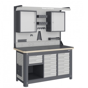 Верстак инструментальный, с двумя экранами, 4 ящика, 1400x700 Great Wolf GWT-V1400B2