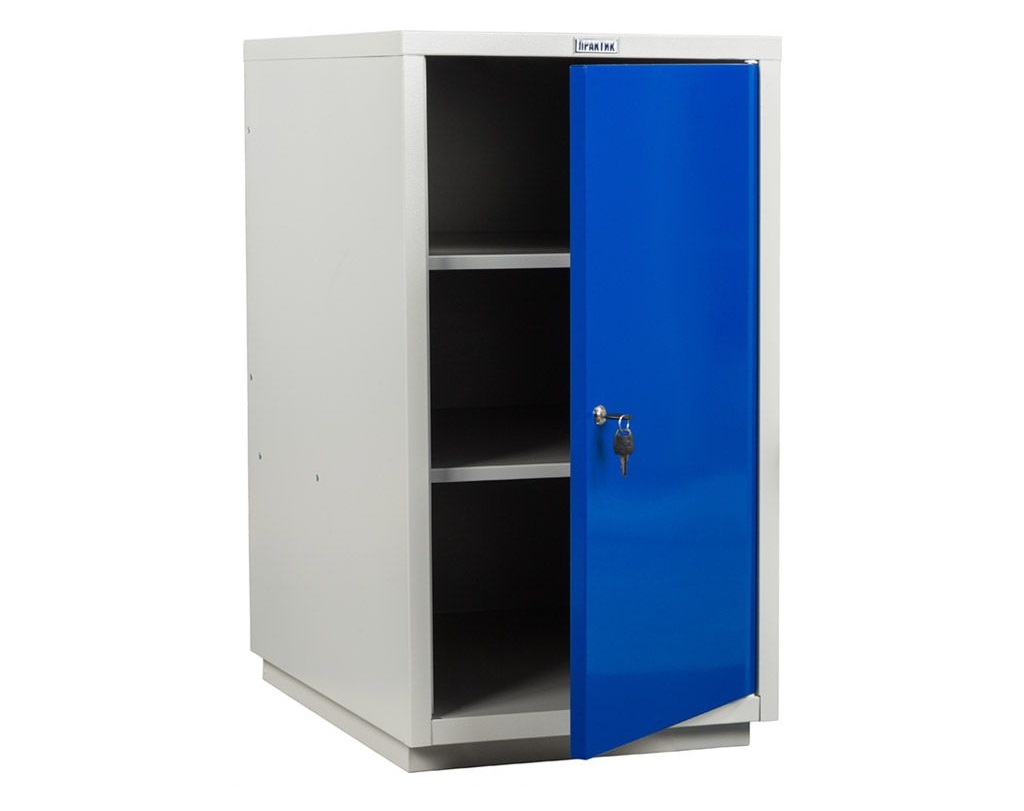Тумба укомплектована 2-мя съемными регулируемыми полками и 1 дверцей, возможность смены стороны открывания двери. Ключевой замок на дверце тумбы. Нагрузка на полку 30 кг.