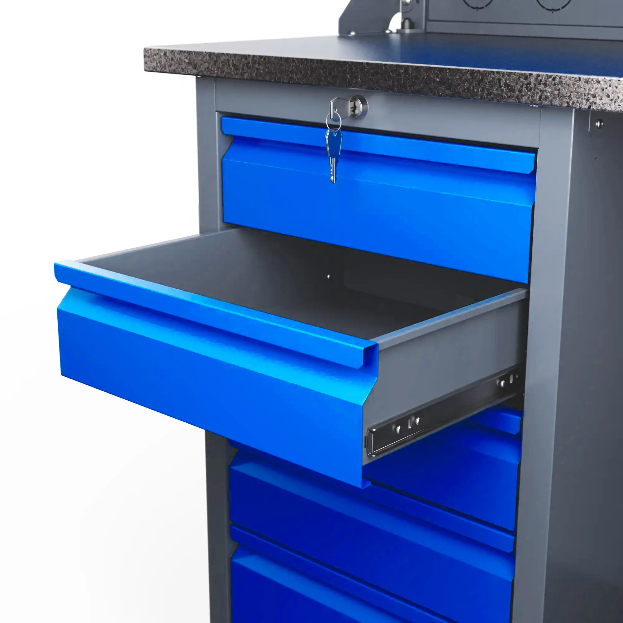 Самые компактные верстаки с глубиной столешницы 500 мм. Благодаря небольшой глубине, такие верстаки легко размещаются в ограниченных пространствах, например, в гаражах, мастерских и тд. Несмотря на компактные размеры, верстаки могут быть оснащены полками, ящиками и держателями для инструментов, что помогает поддерживать порядок и быстро находить нужные предметы.