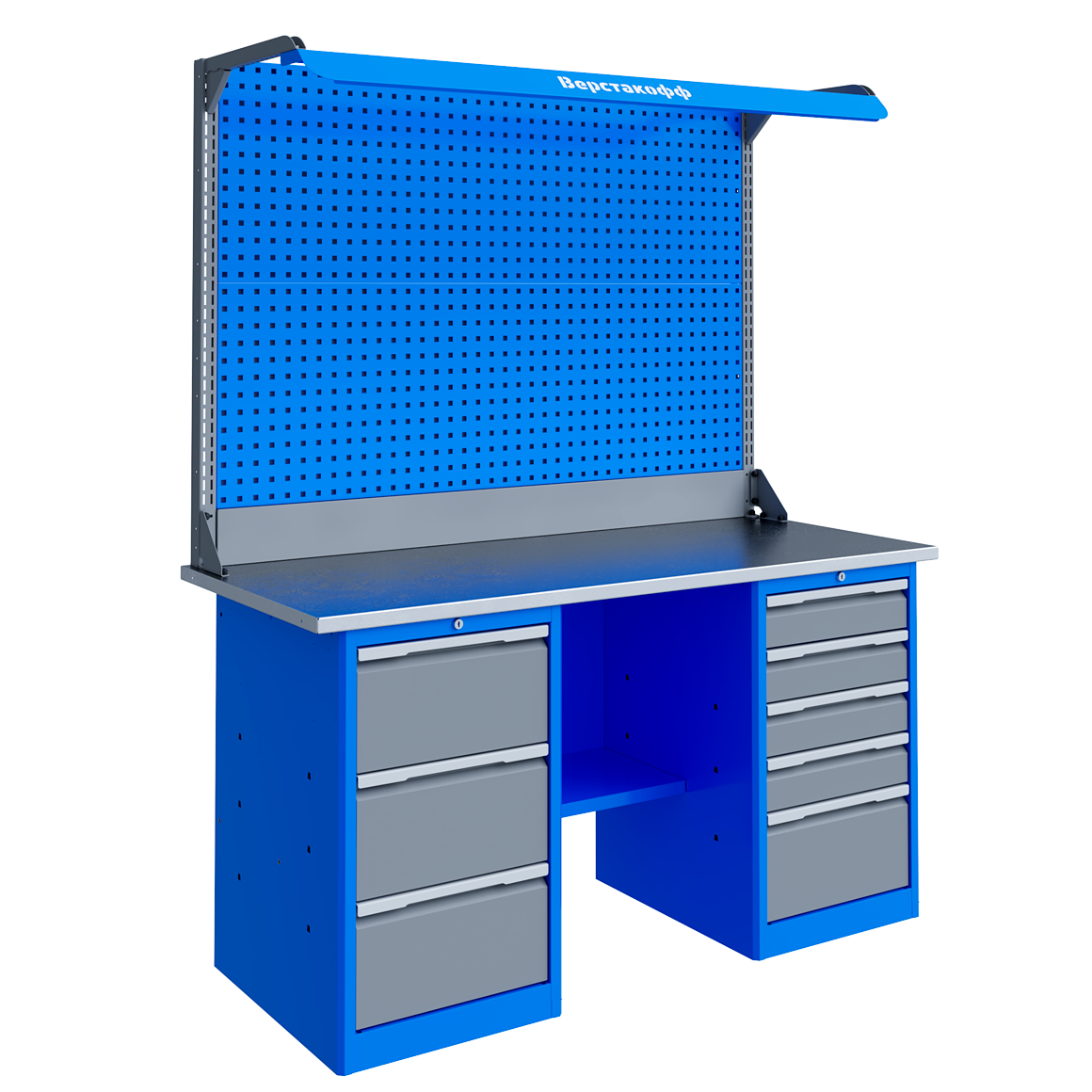 Верстак ввс-209-3, 2-х тумбовый с нишей, 870*1300*700мм, ral5010 rossvik ввс-209-3
