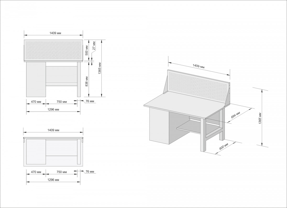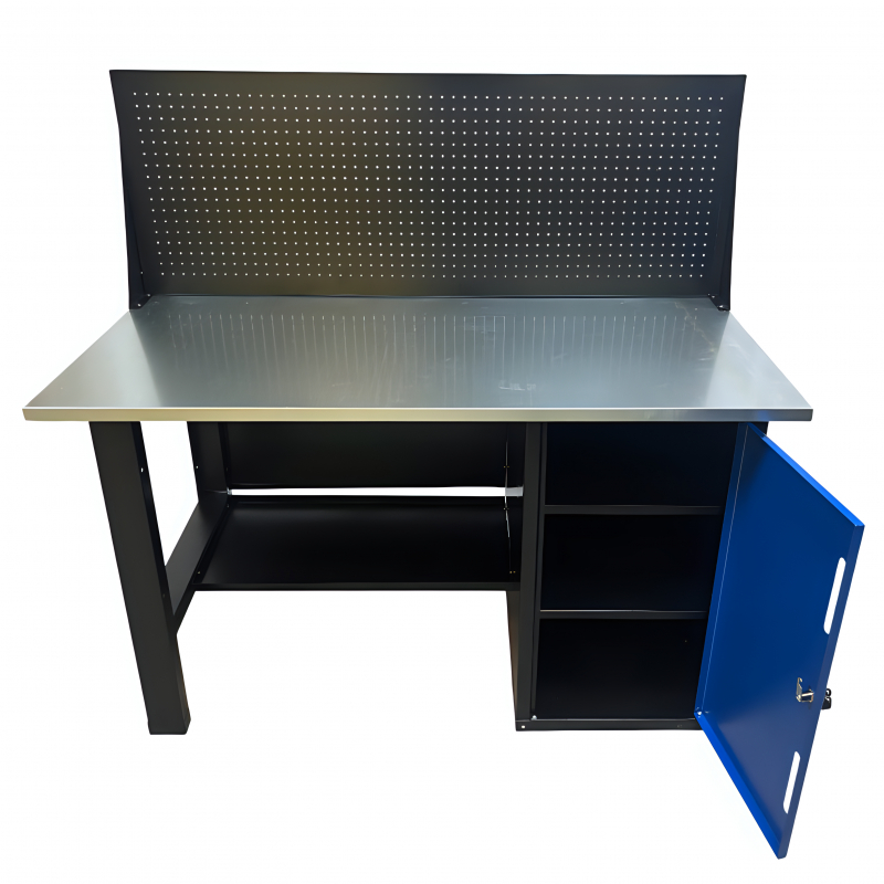 Усиленная столешница (1400х700х27мм) из МДФ и оцинкованного металла позволяет закрепить тиски и производить любые силовые работы по ремонту.