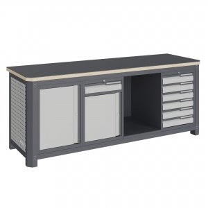 Модуль верстака выполнен сварными. Ящики в модулях устанавливаются на шариковых телескопических направляющих полного выдвижения.