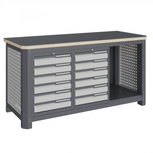 Модуль верстака выполнен сварными. Ящики в модулях устанавливаются на шариковых телескопических направляющих полного выдвижения.