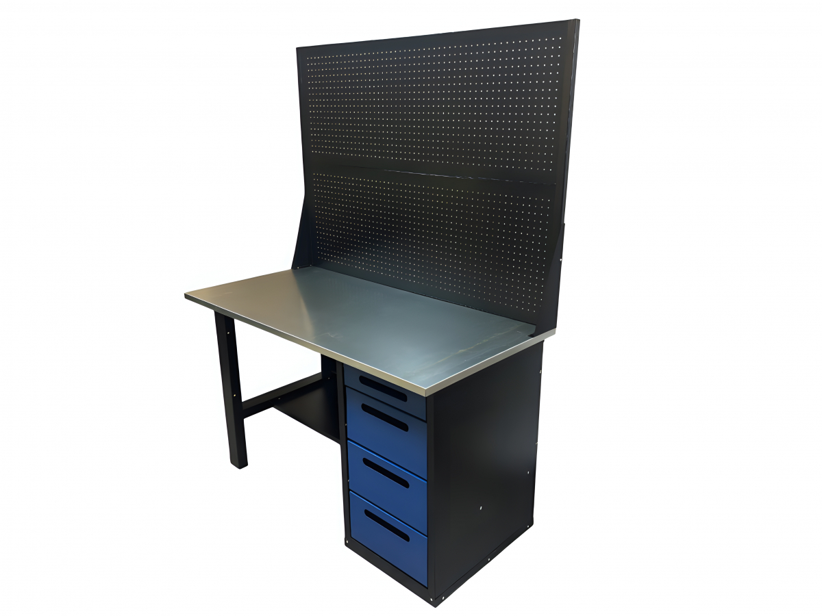 Усиленная столешница (1400х700х27мм) из МДФ и оцинкованного металла позволяет закрепить тиски и производить любые силовые работы по ремонту.