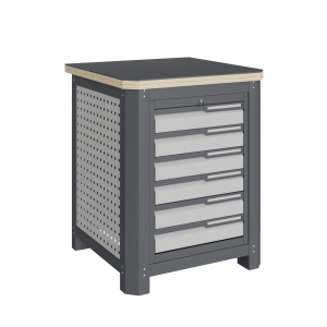 Модуль верстака выполнен сварными. Ящики в модулях устанавливаются на шариковых телескопических направляющих полного выдвижения.