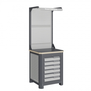 Модуль верстака выполнен сварными. Ящики в модулях устанавливаются на шариковых телескопических направляющих полного выдвижения.