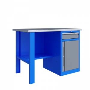 Тумба верстака - сварная. Ящики в тумбе устанавливаются на шариковых телескопических направляющих полного выдвижения. В тумбе P8 установлен малый ящик и имеется отделение с дверью и одной полкой. Внутренние размеры малых ящиков (ВхШхГ), не более: 103 х 397 х 520 мм. Ящик снабжен центральным замком с поворотом ригеля 180 градусов и подпружиненной тягой. В комплекте два ключа. Полка устанавливается на парах специальных формованных зацепов, выполненных в боковых стенках тумбы. Имеется возможность смены стороны открывания двери. Дверь тумбы снабжена центральным замком с поворотом ригеля 180 градусов. В комплекте имеется два ключа.