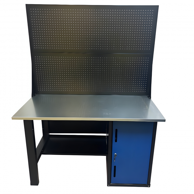 Усиленная столешница (1400х700х27мм) из МДФ и оцинкованного металла позволяет закрепить тиски и производить любые силовые работы по ремонту.